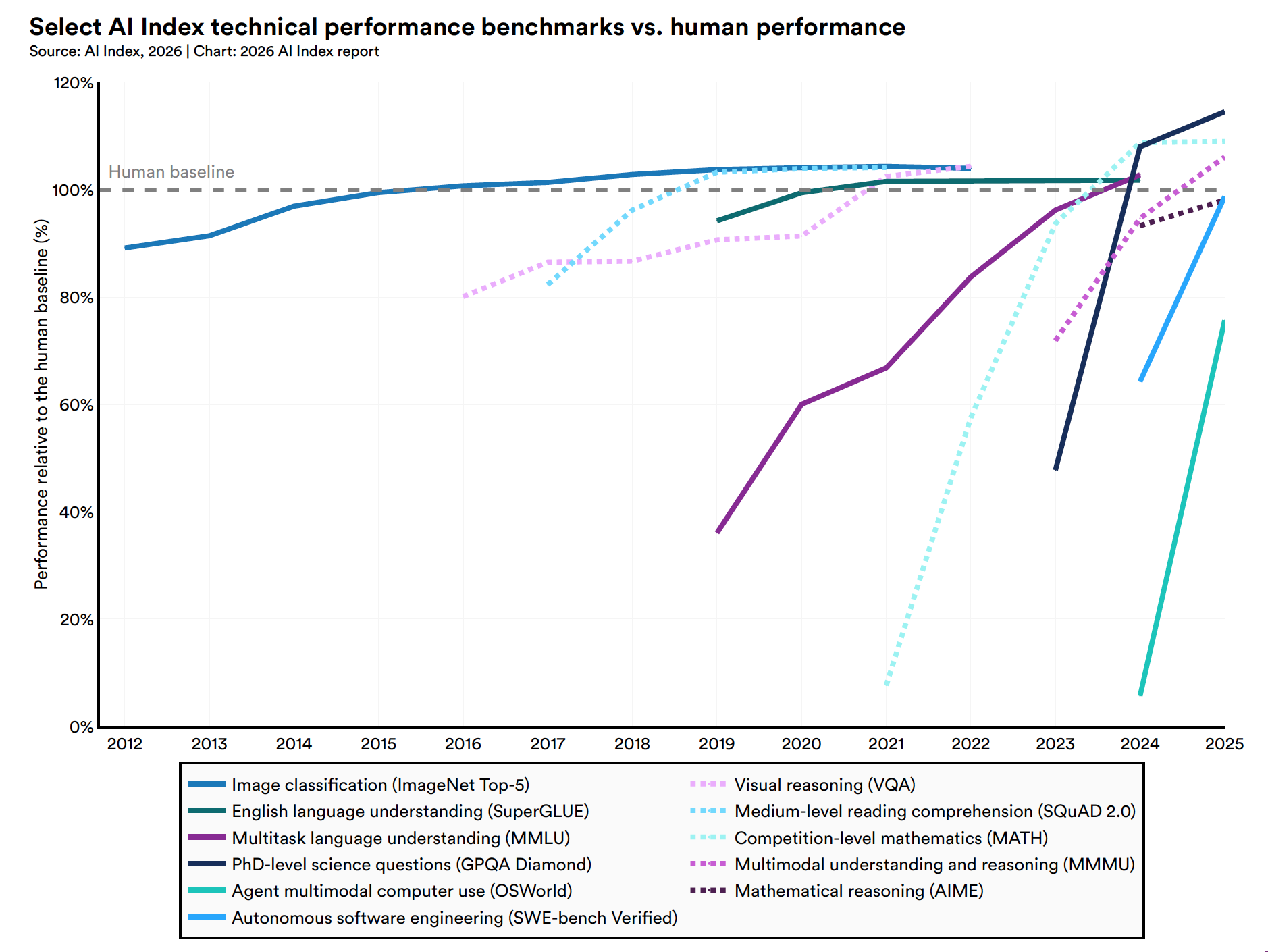 O AI Index 2026 registra o que já aconteceu. E o que já aconteceu tem consequências que merecem tratamento direto.