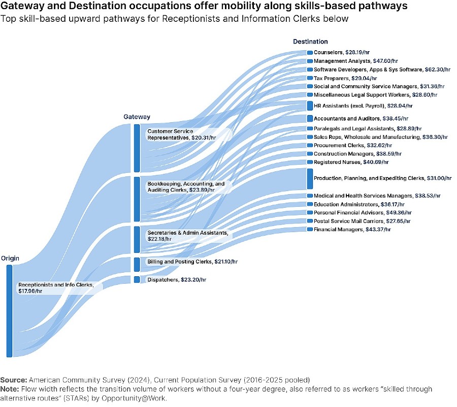 Embora a substituição direta de empregos seja menor do que se imaginava, há outra preocupação emergente: o impacto da IA nas trajetórias de carreira. Um estudo da Brookings Institution mostra que mais de 15 milhões de trabalhadores norte-americanos sem diploma universitário estão em ocupações altamente expostas à IA. Entre eles, cerca de 11 milhões trabalham em chamados “Gateway jobs”, funções intermediárias que historicamente permitem a transição para empregos de maior remuneração.