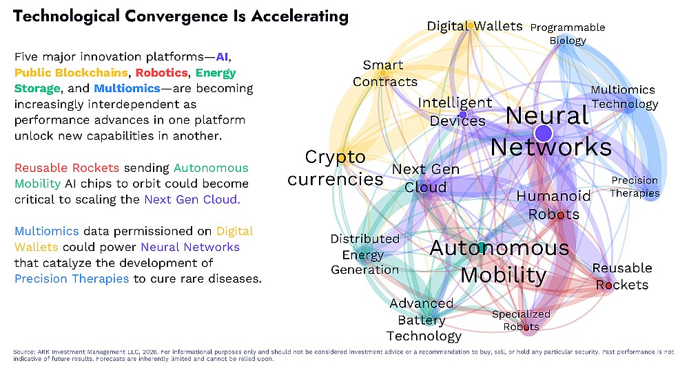 O Big Ideas 2026, da ARK Invest, mostra como a convergência entre plataformas tecnológicas está acelerando produtividade, consumo digital e a criação de novas infraestruturas financeiras