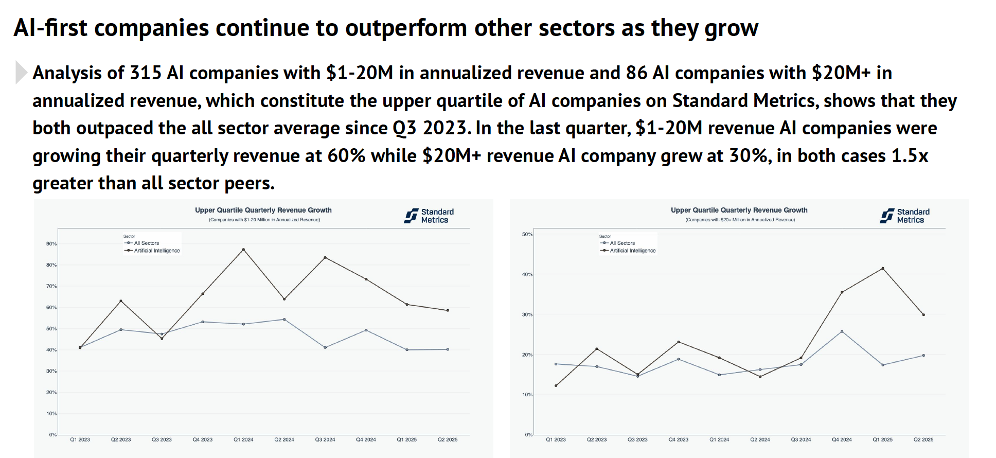 O relatório resume: “AI-first companies are growing faster, but not necessarily healthier.”