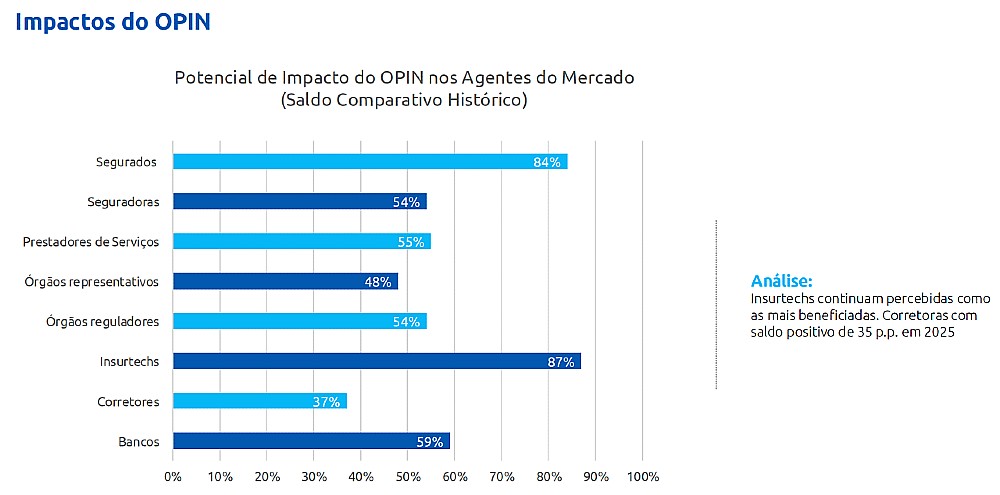O otimismo, por sua vez, caiu de 64% em 2024 para 57% em 2025, uma queda de 7 pontos percentuais. Para Gustavo Leança, isso reflete a falta de entregas concretas. “O Open Insurance não se projeta para a sociedade em termos de solução. Porque, se ninguém usa, não tem solução disponível, você fica naquela linha do ‘não estou vendo nada acontecer’”, diz.