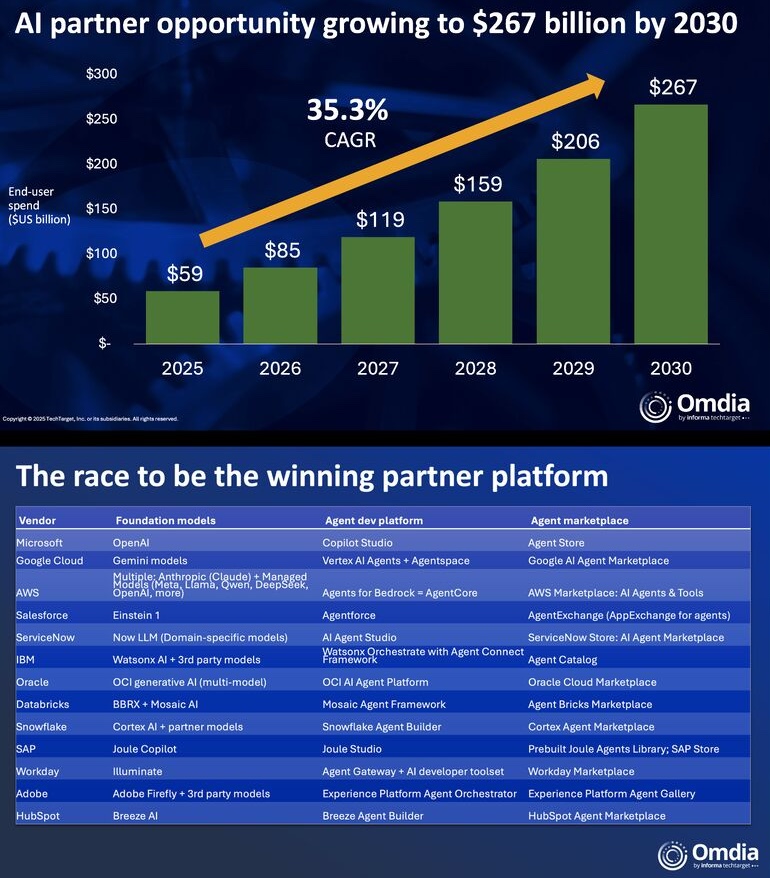 Esse novo modelo está impulsionando também uma transformação no ecossistema de tecnologia. Segundo estudo “Enterprise Agentic AI Software Market Forecast“, da Omdia, a migração da GenAI para agentes representa uma oportunidade de serviços de US$ 267 bilhões até 2030, crescendo a 35,3% ao ano. Hiperescaladores como Microsoft, AWS, Google Cloud, além de Salesforce, Oracle, SAP, IBM e ServiceNow, estão reestruturando seus programas de parceiros, licenciamento e monetização para abraçar essa nova fase da IA como serviço.